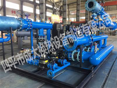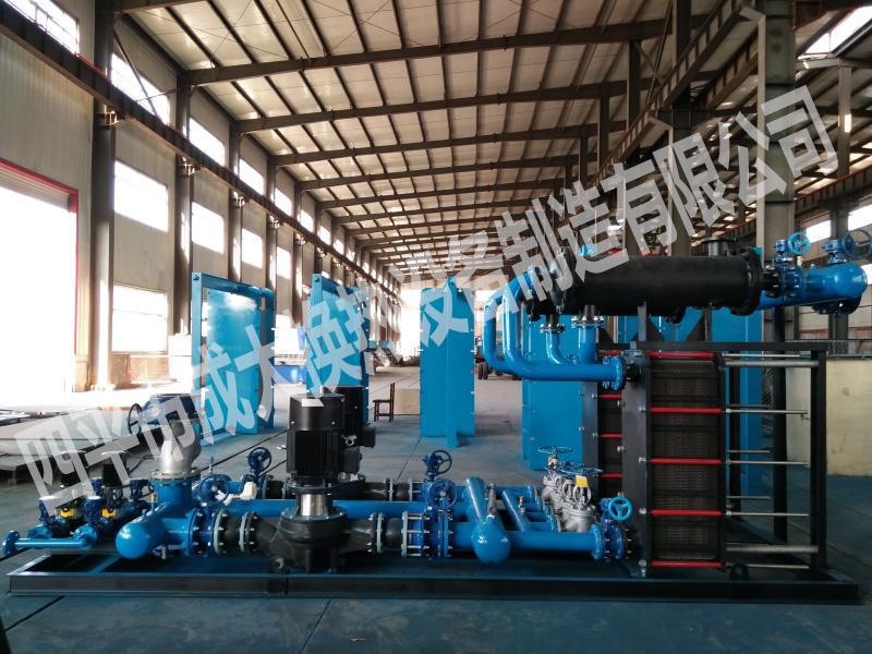 我公司換熱機(jī)組是集成了換熱器,循環(huán)泵,補(bǔ)水泵,溫度計(jì),壓力表,各種傳感器,管路和閥門及工控于一體的成套區(qū)域供熱設(shè)備,并加裝了補(bǔ)水系統(tǒng),定壓系統(tǒng),水處理系統(tǒng),變頻流量控制系統(tǒng),熱量計(jì)及網(wǎng)絡(luò)控制通訊系統(tǒng)。是把大量用戶現(xiàn)場(chǎng)的水泵,閥門,儀表的選擇以及管道法蘭焊接的工作以及電氣控制的現(xiàn)場(chǎng)安裝調(diào)試工作,用我公司來(lái)完成,我公司生產(chǎn)的各規(guī)格機(jī)組,容量從 0.2MW 到 15MW ,采用標(biāo)準(zhǔn)模塊代設(shè)計(jì),自由組合,以滿足用戶不同工況的要求,為用戶提供更合理更適用的機(jī)組,在滿足用戶使用的要求前提下,盡可能為用戶節(jié)省設(shè)備的投資。