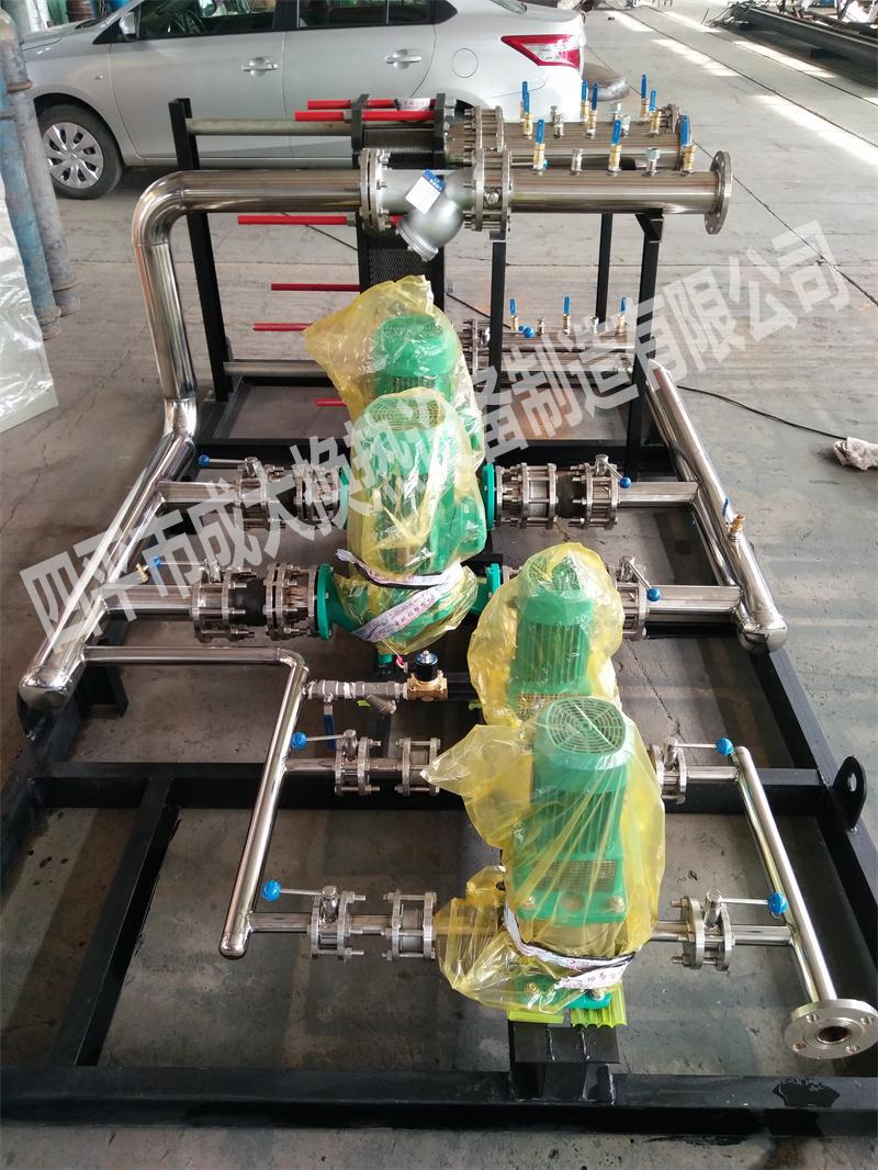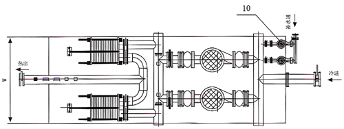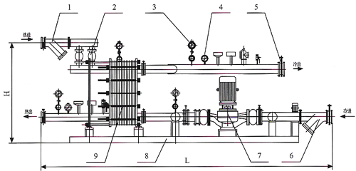 8.底座 9.板式換熱器 10.補(bǔ)水泵(如蒸汽供暖的機(jī)組,根據(jù)用戶要求可加裝蔬水器等)